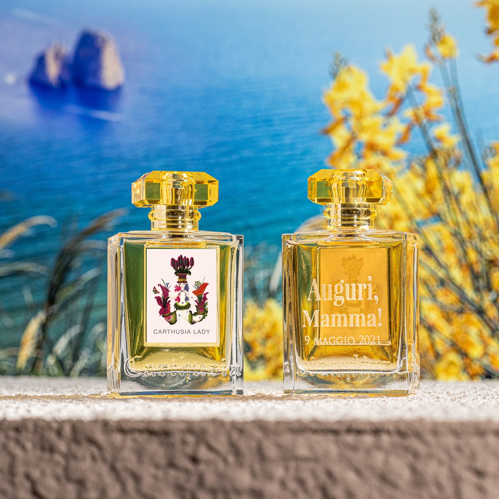 Per la Festa della Mamma ad esempio Carthusia propone l’incisione di una dedica personalizzata sui propri flaconi.