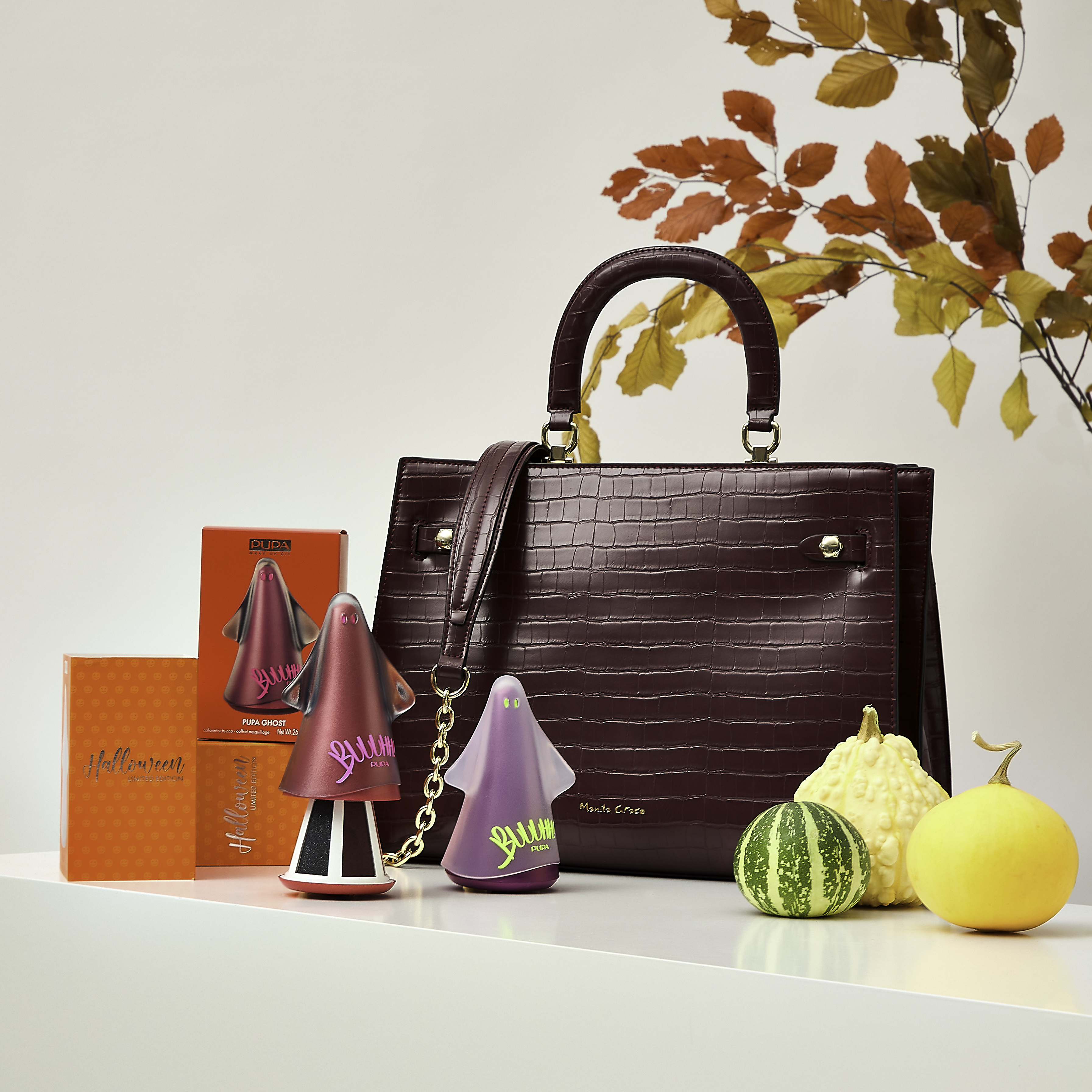 Il cofanetto Pupa Milano, in edizione limitata per Manila Grace, a forma di spiritoso fantasmino, racchiude una palette composta da quattro ombretti e un rossetto matt.