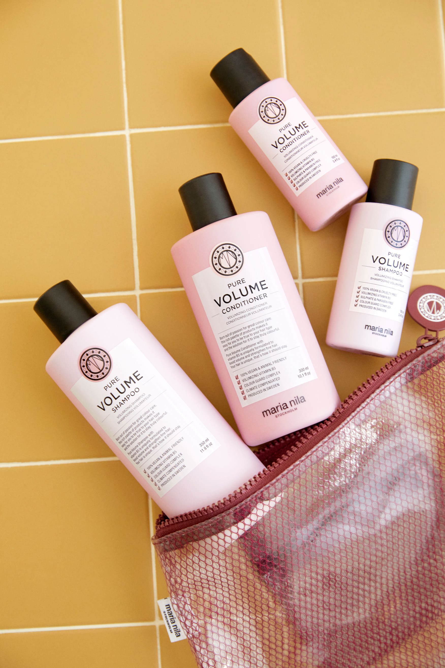 Come per tutti i prodotti Maria Nila, ogni pochette contiene solo prodotti vegani e animal friendly al 100%, prodotti in Svezia garantendo condizioni di lavoro sane e un’alta qualità degli ingredienti e del packaging.