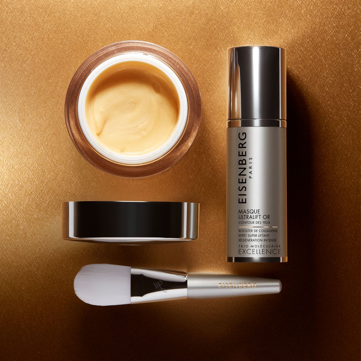 La Ricerca Eisenberg nella Masque Ultralift Or per il contorno occhi ha deciso quindi di combinare gli straordinari benefici dell’oro con un cocktail di ingredienti superattivi e con la Formula Brevettata Triomoléculaire.